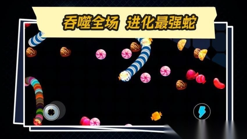 1、经典生存玩法,在限定区域内和其他AI蛇进行角逐,依靠吞食糖豆以及引诱对手碰撞身体来实现成长。