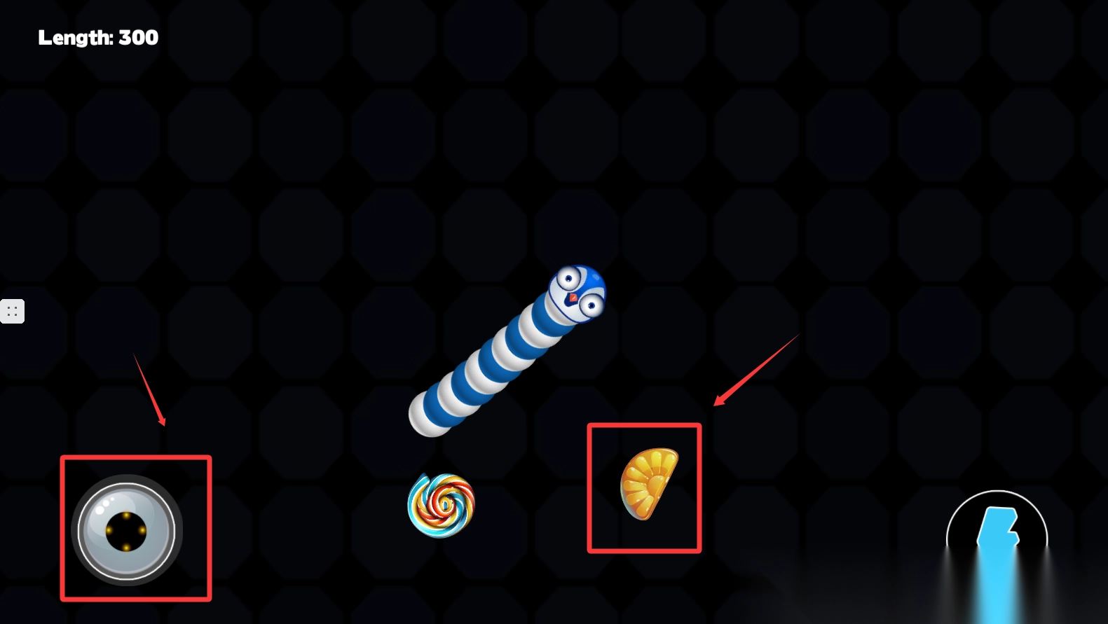 3、策略成长机制,创新运用“吞噬-包围”双成长系统:通过吞噬糖豆来提升体型长度,借助巧妙的走位构建包围圈则能获取额外积分奖励。