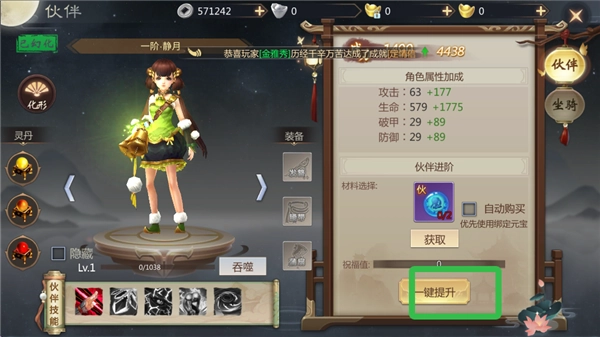 6、可以为伙伴提升等级。