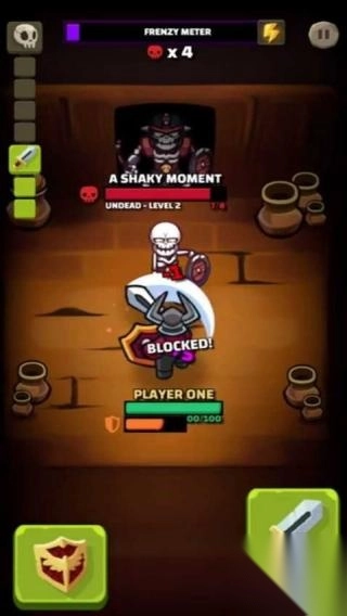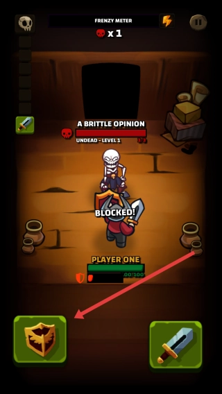 3、当遭遇敌人攻击时,点击左侧的盾牌图标,即可触发“BLOCKED!”效果,以此格挡伤害、保护角色,从而能够继续推进关卡。