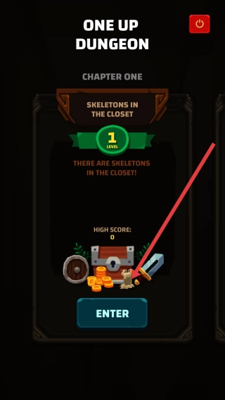 1、点击【ENTER】键,进入【One-Up-Dungeon】第一章“壁橱里的骷髅”的第1关,开启地牢战斗环节。