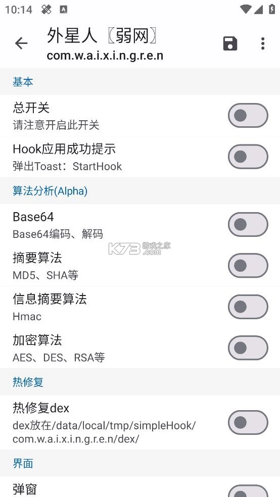 《simplehookr软件》是一款便捷实用的安卓系统Hook工具,支持自定义返回、参数等功能,可记录加密算法、Toast、Dialog等信息。其界面清新简洁,占用内存较小,能够在线获取应用信息,支持一键操作,清理顽固垃圾,提升设备运行流畅度,适合搞机爱好者使用。