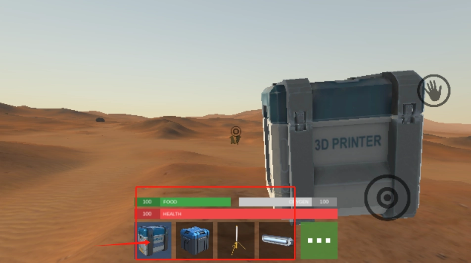 2、走到标着“3D PRINTER”的箱子附近,点击红框里的物品来使用,记得留意食物量和生命值。