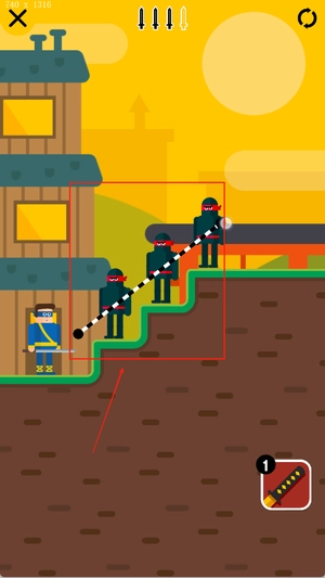 2、操作方式为滑动屏幕画线以控制攻击方向,点击发射按钮即可射击,界面简洁直观,便于随时调整角度与力度来达成目标。