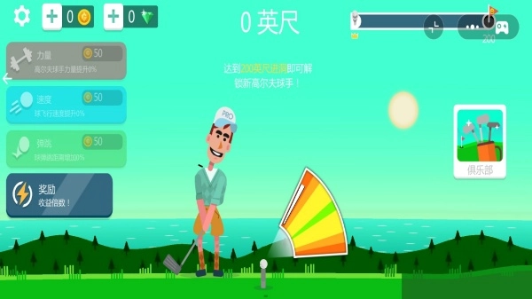 3、借助游戏内奖励来升级球杆之类的装备,以此提升击球的稳定性、击球距离等属性,从而间接降低操作上的难度,让游戏的推进感得到增强。