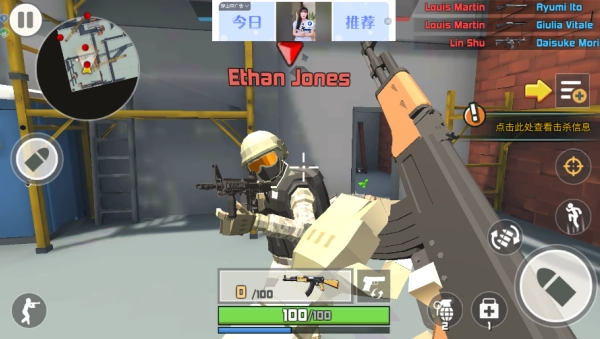 1. 玩家借助虚拟摇杆操控角色移动,角色会自动锁定视野范围内的敌人,点击射击按键就能发起攻击。