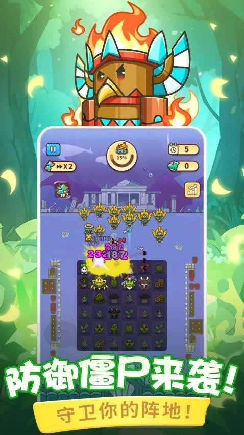 2、核心玩法为策略塔防,玩家可在线参与抵御僵尸进攻的挑战;操作简单易上手,兼具趣味性与挑战性,支持随时随地开启闯关模式。