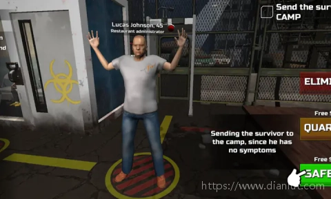 2、根据你所收集到的线索,来判断每个人是否可以进入营地。健康的人能够被允许进入营地,而有可疑情况的人则会被送到隔离区进行观察。在确认是感染者的时候,必须严格执行清除程序,绝对不能抱有侥幸心理。