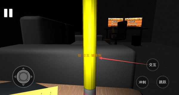 3、将中心交互点对准物体,即可与之产生互动,例如将物体推倒。