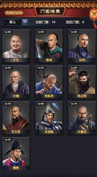 1、在门客培养玩法里,玩家所拥有的所有门客都能通过该玩法得到提升,玩家可以从自己的门客列表中任选想要升级的门客进行培养。