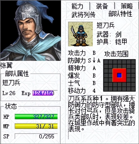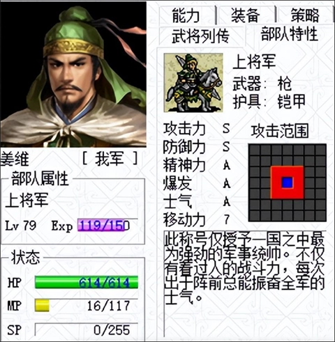 -将军→卫将军→大将军(AAAAA):各项能力均衡,兼具文韬武略。完成三次转职后,能提升周边部队的士气。可使用枪、戟、棍等兵器,转职后还能配备砍刀。