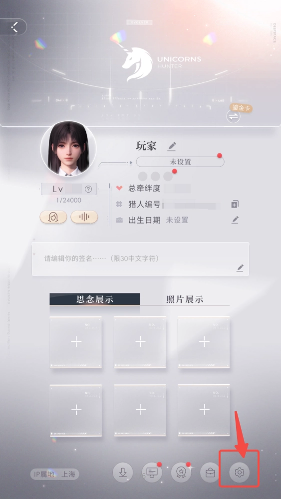1. 点击游戏主界面左上角显示猎人等级的区域,即可进入个人信息页面;