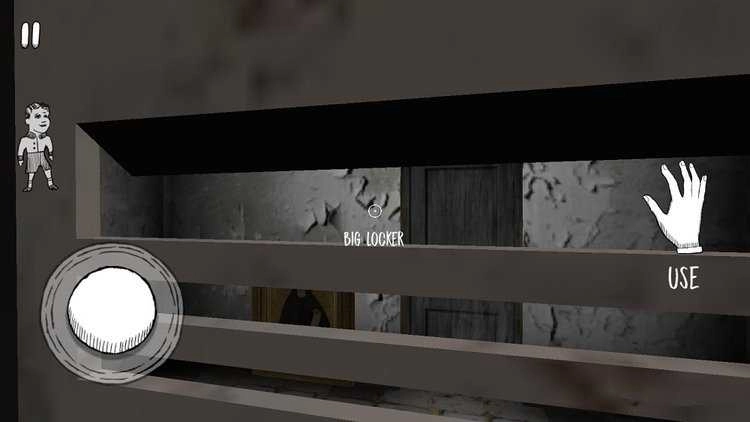 8、藏身地点:游戏里能够藏身的地方包括大衣柜和打开的矮柜子。大衣柜的使用方法是打开柜门后走进柜内,再将柜门关上即可藏身。至于打开的矮柜子,它位于二楼,当你的白点指向其敞开的入口时,屏幕右上方会出现一个图标,点击该图标就能钻进柜子里藏身。