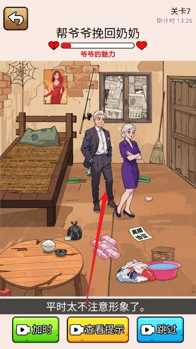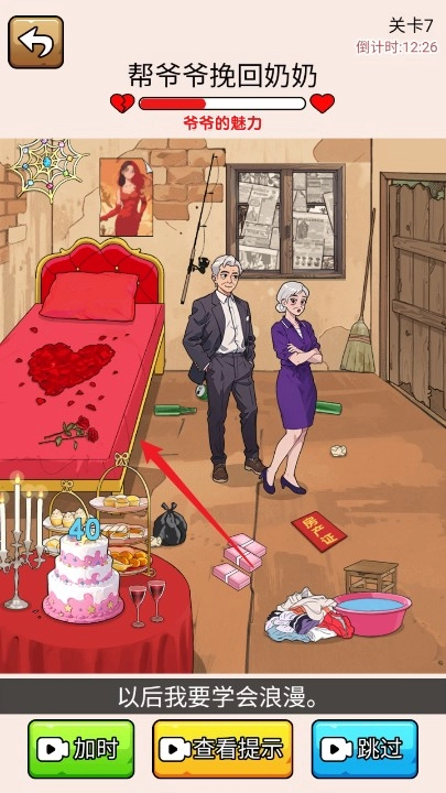 3、要是在关卡里毫无头绪,不妨点击屏幕下方的按钮,通过观看广告来获取提示或者直接跳过当前关卡。
