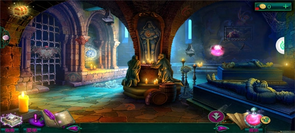 3、游戏画面制作精良,每一张地图场景都是经过精心设计的作品。1、玩家若想从陷阱里脱身,第一步得点击十字军拱顶以及窗边的那两只蝙蝠;