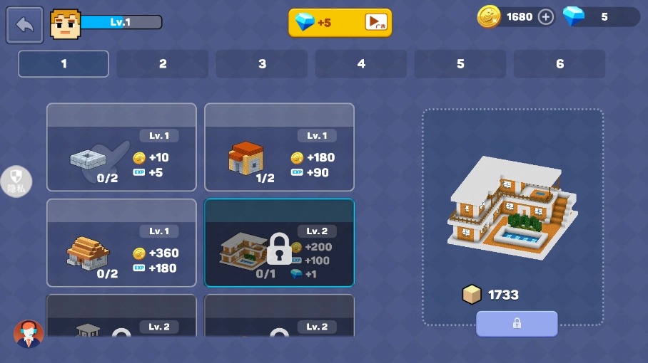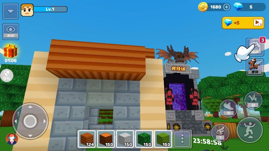 1、借助虚拟摇杆来自由操控角色移动,收集各种各样的建材和资源,建造出属于自己的独特建筑。
