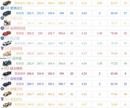 T1:追光者、迅捷流星、时之夭、星空猎手、地狱天启、海神、惊鸿、星舞者、冰皇 该梯队的赛车阵容近期未发生调整,核心原因在于当前版本尚未新增免费获取的A车;不过值得关注的是,第七期勋章A车太阳神即将上线,其性能表现大概率能跻身该梯队的顶尖行列。