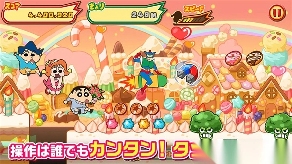 3、这款备受玩家青睐的动作闯关游戏,玩家在其中需要操控蜡笔小新完成一系列精彩的酷跑挑战,尽情体验游戏带来的刺激快感。
