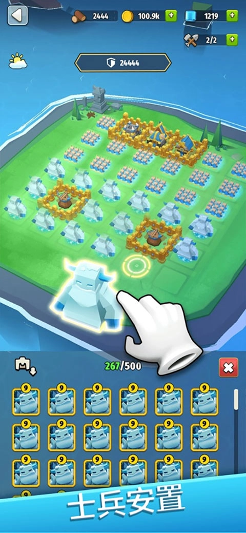 2、玩家每顺利通过一个关卡挑战,就能得到不少金币或者钻石,这些资源可以用来在抽卡时招募新的兵种,就算是同类型的兵种,也能通过移动合并来完成升级。
