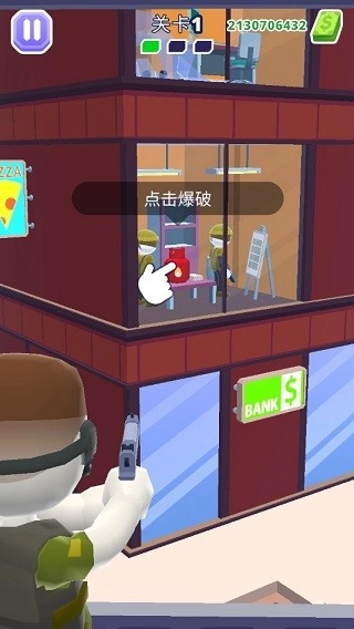 作为一款动作射击游戏,该作完全取消了准星设定,玩家只需点击屏幕上的敌人,即可完成瞄准并发射子弹将其击杀。真可谓轻点屏幕,敌人必倒;子弹无限,畅玩无阻。