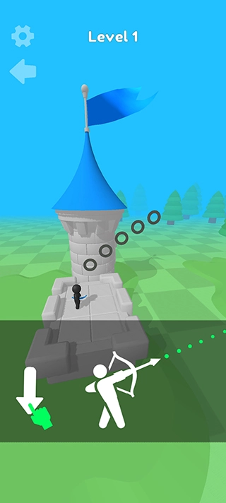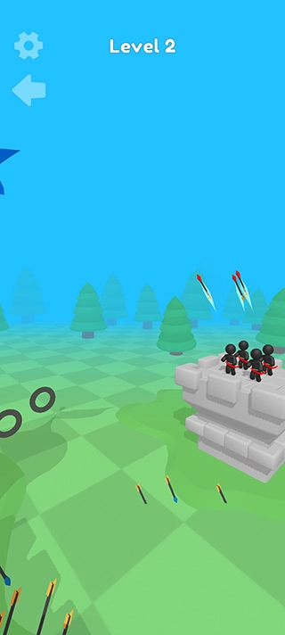 这里有一座弓箭手塔可供您使用。把相同的火柴人弓箭手合并起来就能升级他们!您招募的弓箭手英雄等级越高,击败敌人的速度就越快。