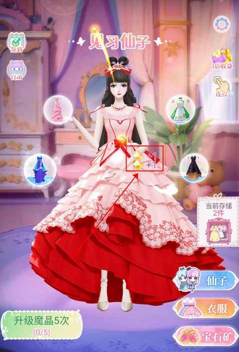 3、提升点击等级能够增加每次点击所获取的魔晶数量,而且升级达到一定次数后还可以解锁新的衣服。