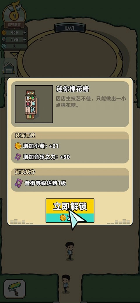 1、游戏初始阶段,玩家将购入一条街道,以此为起点,正式开启你的音乐梦想征程。