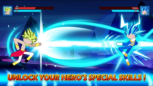 3、角色解锁激励机制:玩家在对战中获胜次数越多,就能逐步解锁更多火柴人赛亚人角色,每个角色都有独特的招式特点与必杀技能,解锁新角色不仅能带来全新的格斗体验,还能有效激发玩家的持续挑战热情。