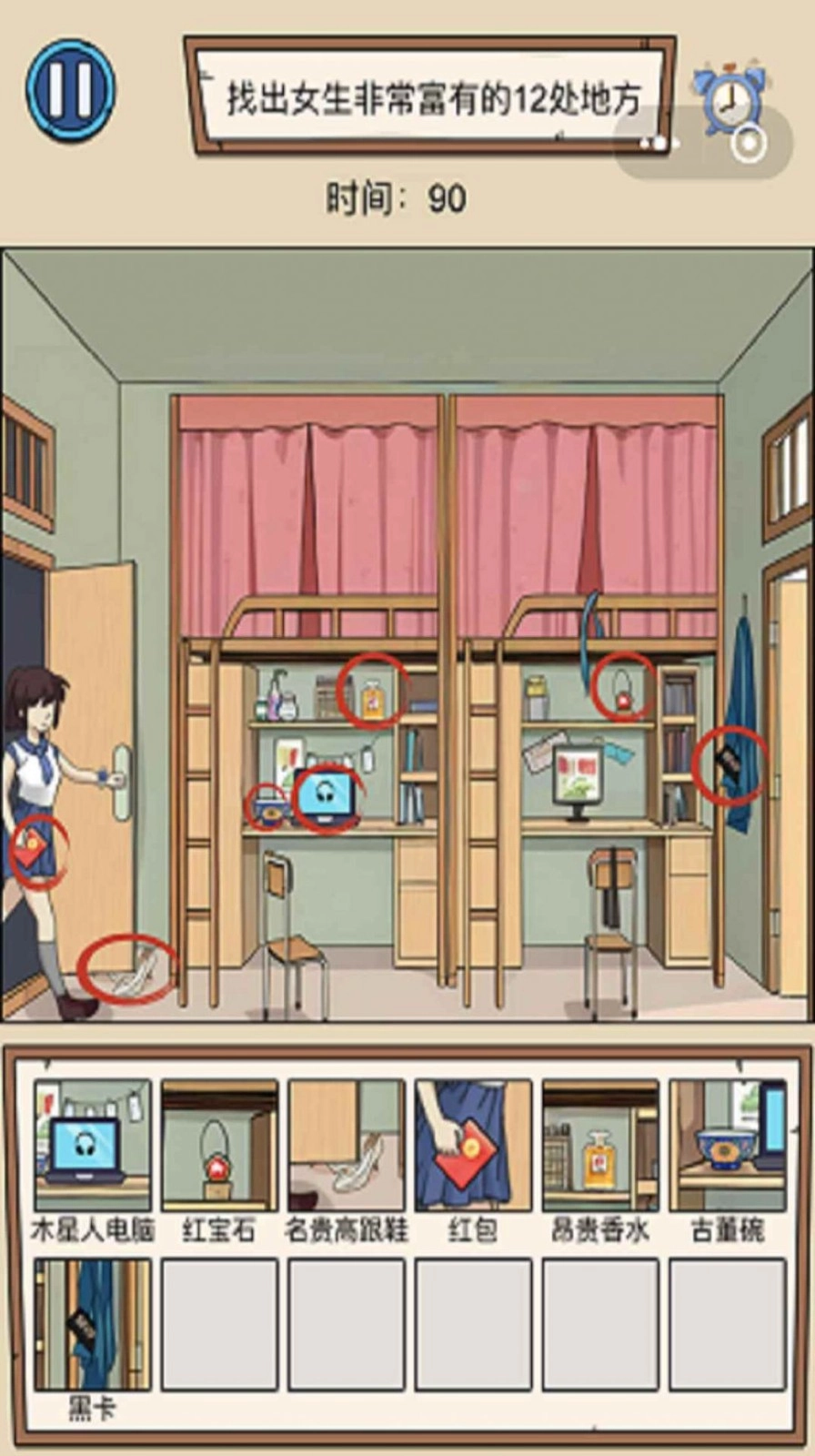 2. 在游戏过程里,玩家能够收集各类道具来辅助自己更顺利地解决谜题。一部分道具能给予额外的时间或是提示,另一部分则可以开启新的关卡或是解锁新的角色。所以,玩家得在游戏中尽量去收集更多的道具。