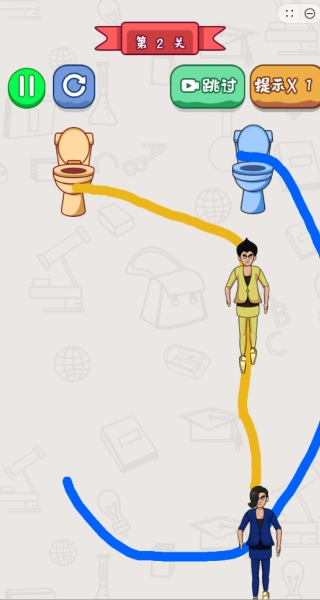 1、从第一关开启挑战,把角色和对应的马桶连接起来。