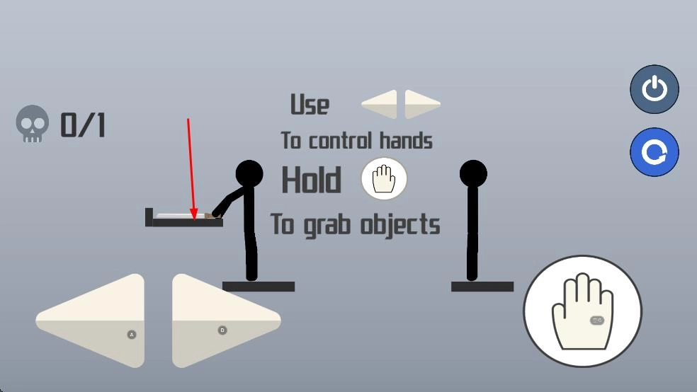 1、进入游戏界面后,可借助左右箭头按钮操控双手移动,长按右侧的手型图标即可抓取场景中的物品。