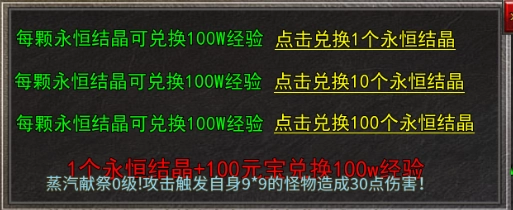 打装备回收元宝的掉落率很高,全区全图有大量实物奖励可通过击杀怪物获取,也能在实物兑换处用永恒结晶来兑换经验。