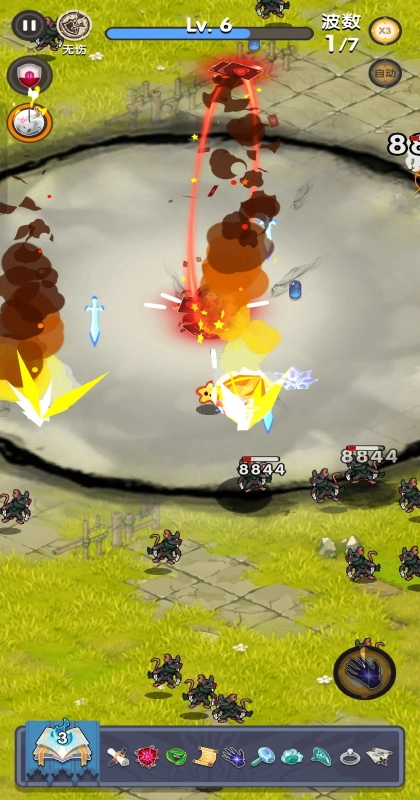 2、游戏里的角色采用自动攻击机制,玩家只需操控角色的移动方向即可;但随着怪物数量不断增加,对玩家走位的要求也会越来越高。