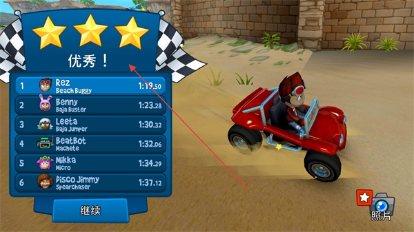 2、按照玩家车辆冲过终点线的耗时来排定名次,并据此得到游戏的星级评价。