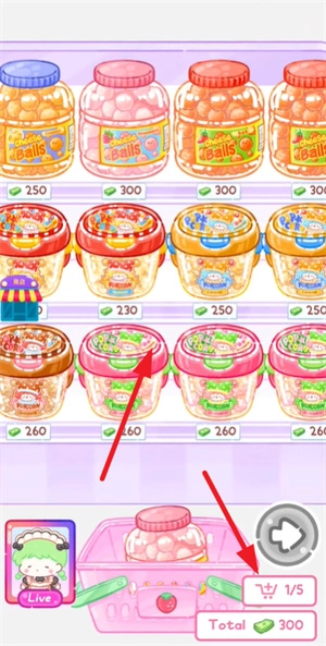 2、接着在货架上能看到琳琅满目的美食,需要挑选出五样,把它们全都添加到购物车里。