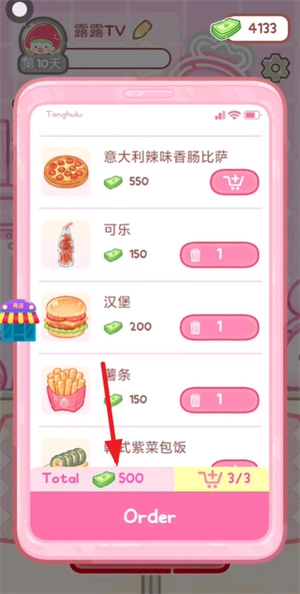 然后会出现不少美食,像辣味冷面、冰淇淋之类的,这些都能直接下单,不过得选够三样美食才行。