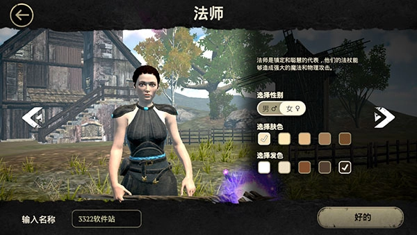 我们以法师为例,接着再设定性别、肤色、发色、昵称后,就可以开始冒险了。