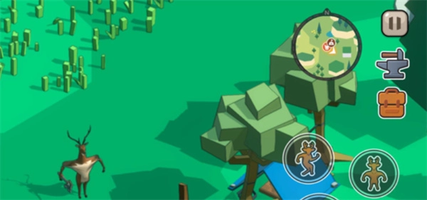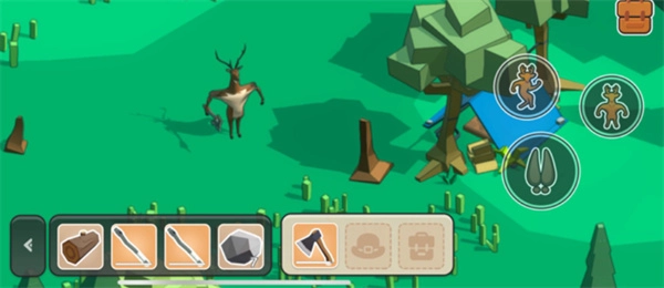 1、操控角色进行快速移动,同时还能使用背包里的道具(像斧头这类),这样就能轻松砍伐树木,进而获取木材。