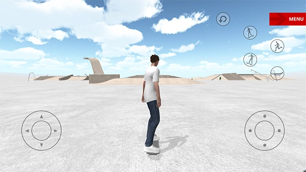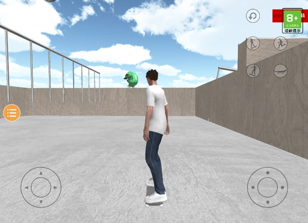 3、玩家需借助前进、后退、左转、右转这四个按键,操控角色参与滑板特技赛。