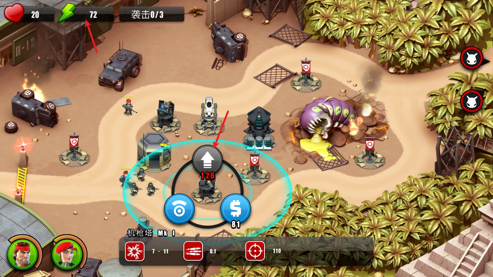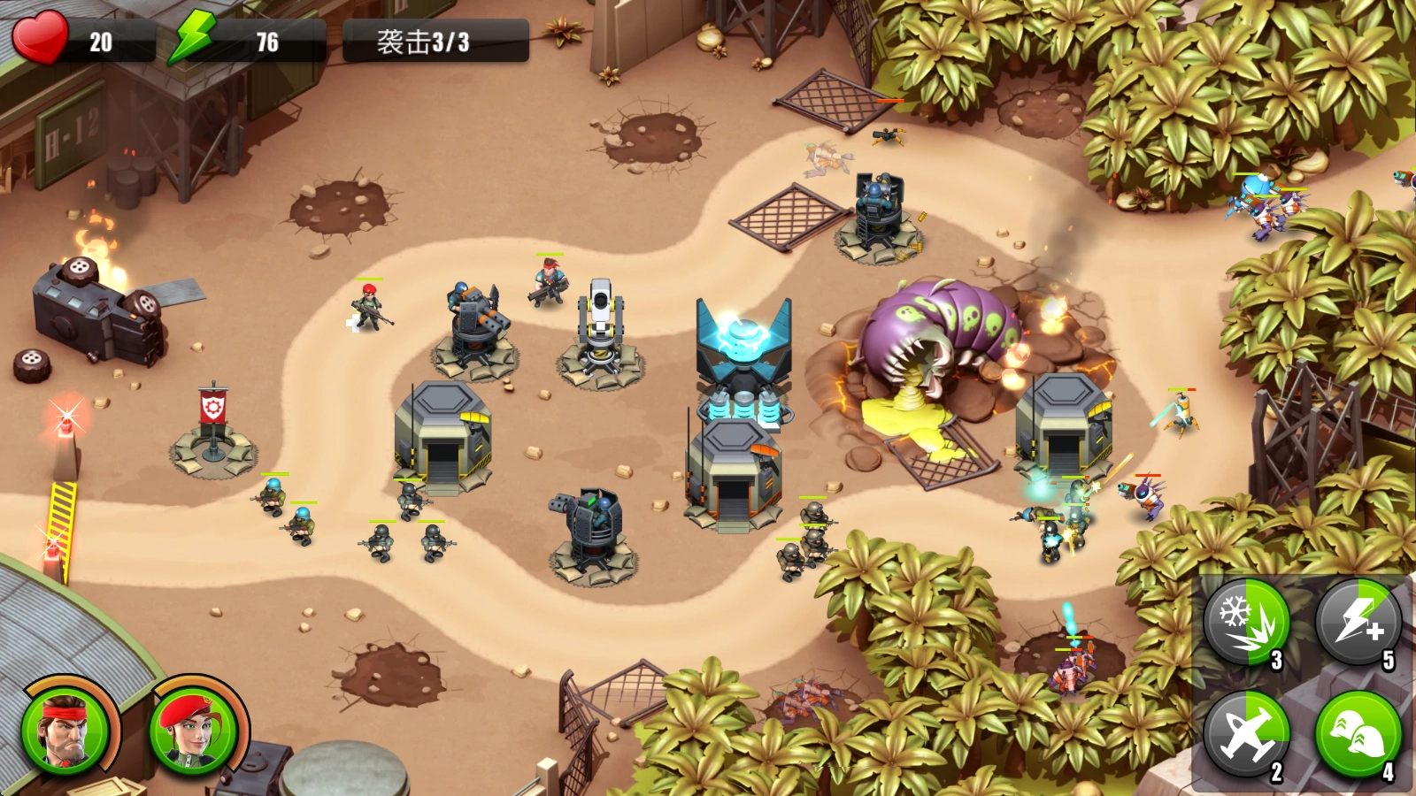 3、解锁强力的全新防御塔与技能以强化你的防御体系,邀请盟友加入全面的战斗,一同共享空袭打击与援军支援的助力。