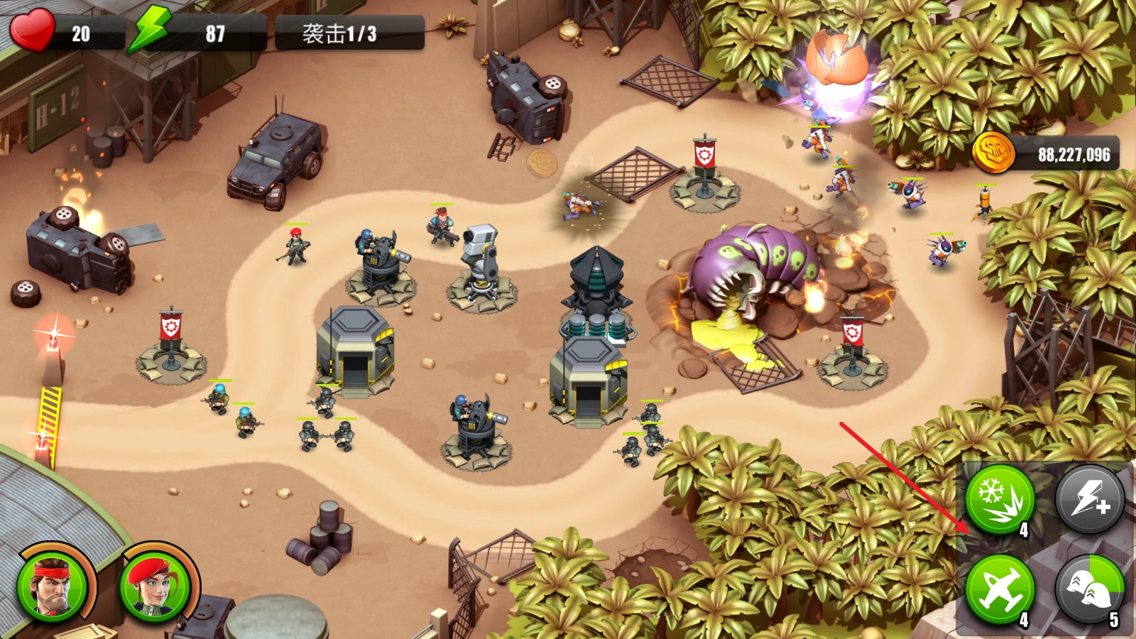 6、右下角还有各种支援道具可以使用,例如空袭。