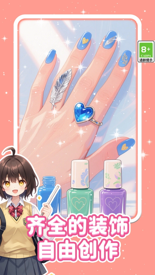 指尖解压美甲这是一款休闲闯关类游戏,游戏里采用了Q版卡通的画风,你需要发挥自己的想象力开始挑战哦,为你的角色开始进行美甲,超多种风格的美甲可以自由的进行选择哦,游戏里多个关卡可以选择哦,让玩家们可以在游戏里得到很好的解压,喜欢的快来吧!