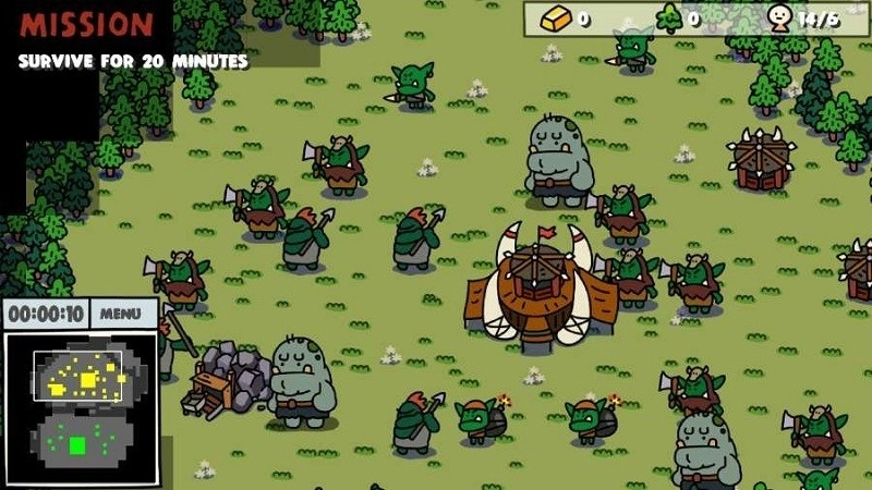 2、卡通版魔兽RPG,造农民爆兵砍木挖矿,一个都不少,各个兵种供你使用,跟电脑上玩一样。