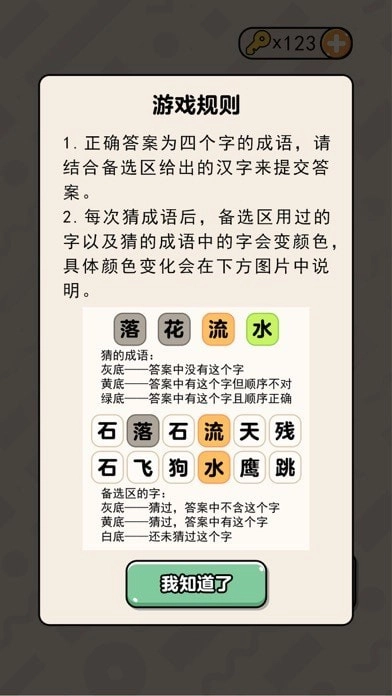 4.成语故事与知识:游戏内嵌有成语故事和相关知识,玩家在答题的同时还能了解成语背后的文化内涵。