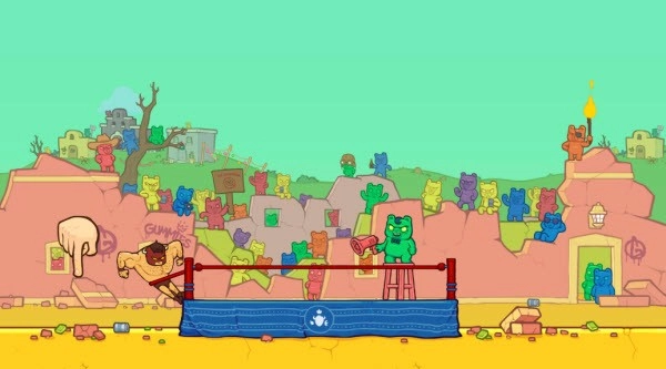 用橡皮筋把野牛和小伙伴弹出去,去收拾那些入侵的软糖熊大军吧。