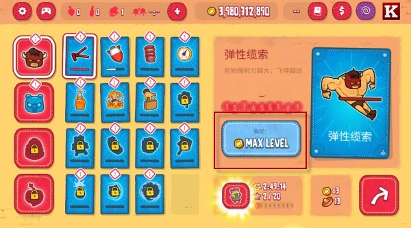 通过花费金币升级技能可以使你跳的更远。