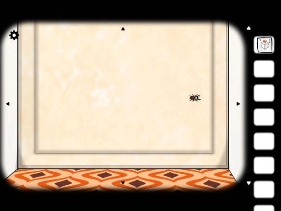 残酷的场景即将上演,点击桌子切换到熨斗的画面,点击熨斗使其抬起,再点击小虫让它爬过去……