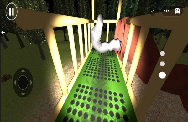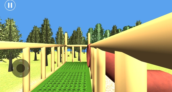 滑动虚拟摇杆,操控角色移动至滑梯旁,仔细观察它是否存在异常之处。