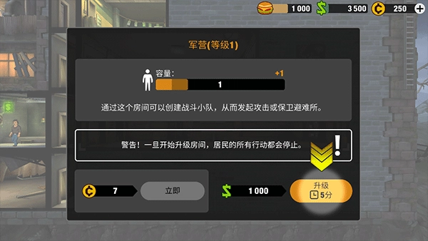然后根据提示我们要对军营升级。