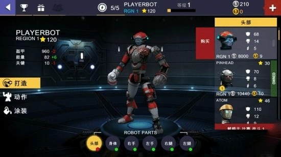 编辑机器人属于外在层面的升级,是那种视觉上就很有冲击力的升级类型,主要包含打造、动作和涂装这三大类别。打造侧重于对机器人各个部位的机甲进行升级改造;动作设计能让机器人在比赛过程中展现出更炫酷的姿态,提升整体的观赏效果;涂装则是通过喷涂不同色彩,让机器人看起来更具帅气感。